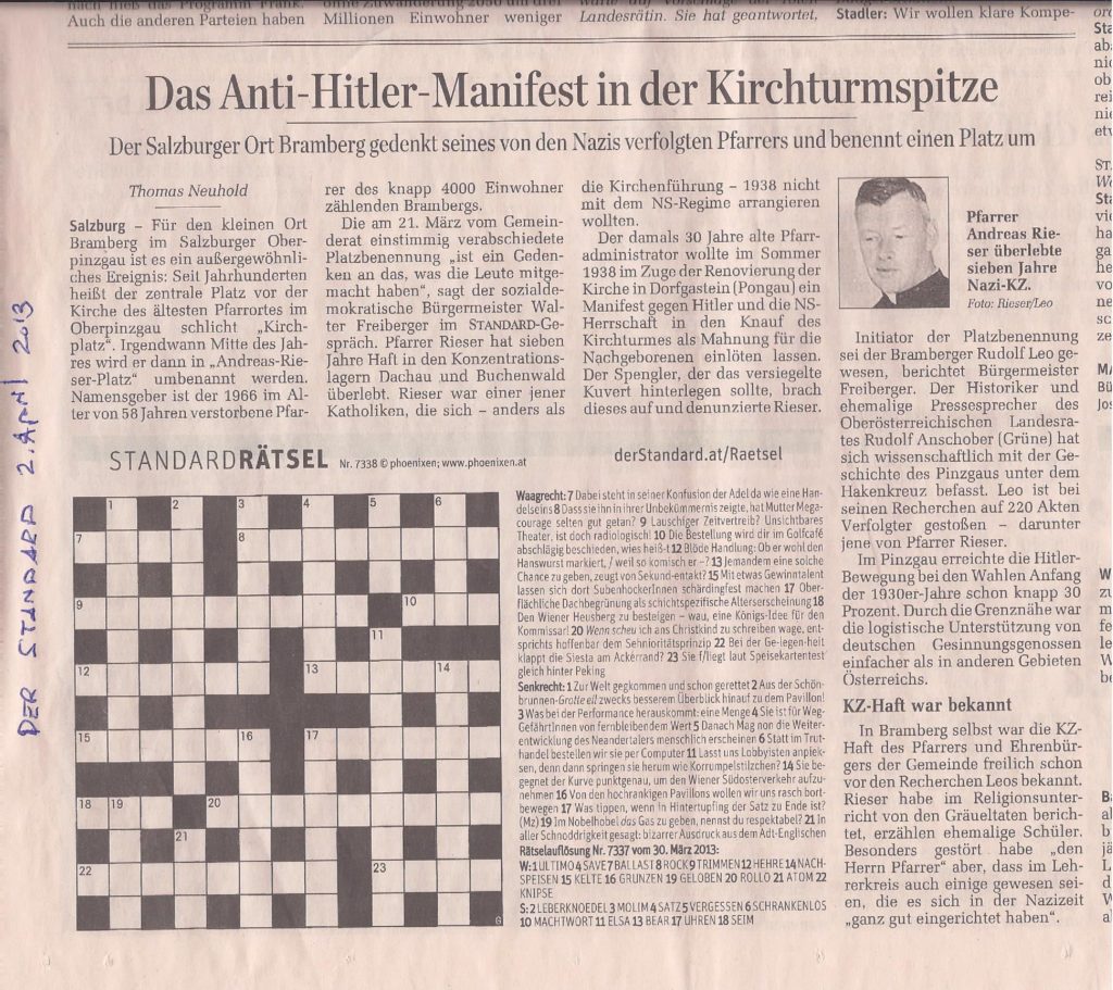 Beitrag über Pfarrer Rieser. Das Anti-Hitler-Manifest in der Kirchturmspitze“