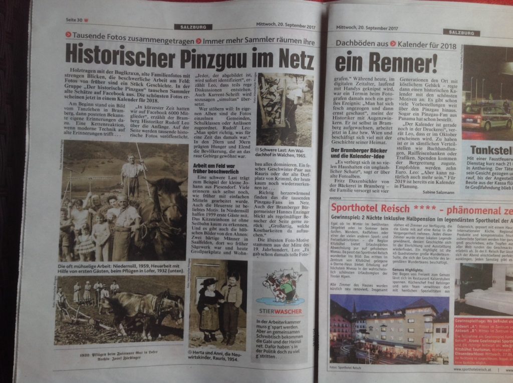 Kronen Zeitung 20.09.2017 17. April 2019 Aus Von rudileo Bericht über die Facebookgruppe Historischer Pinzgau
