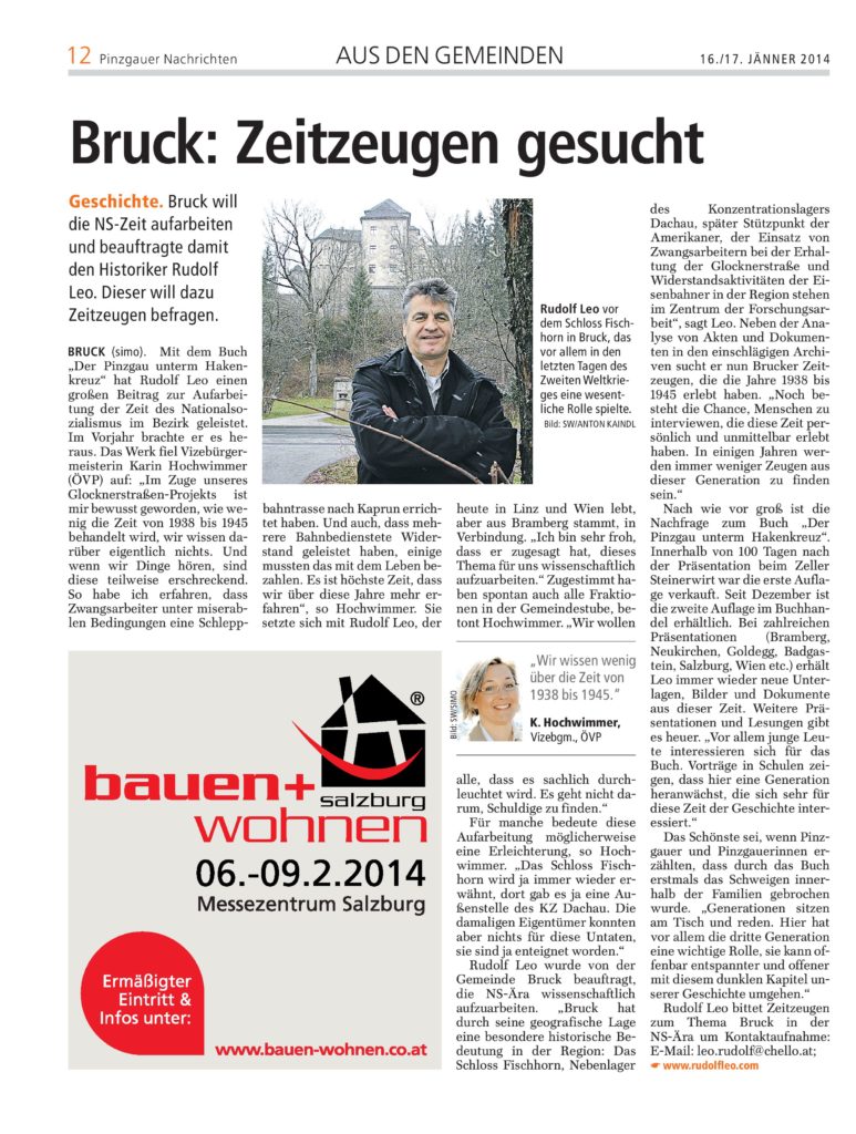 Pinzgauer Nachrichten 16.01.2014 17. April 2019 Aus Von rudileo Für das Projekt „Bruck unterm Hakenkreuz“ werden Zeitzeugen gesucht.