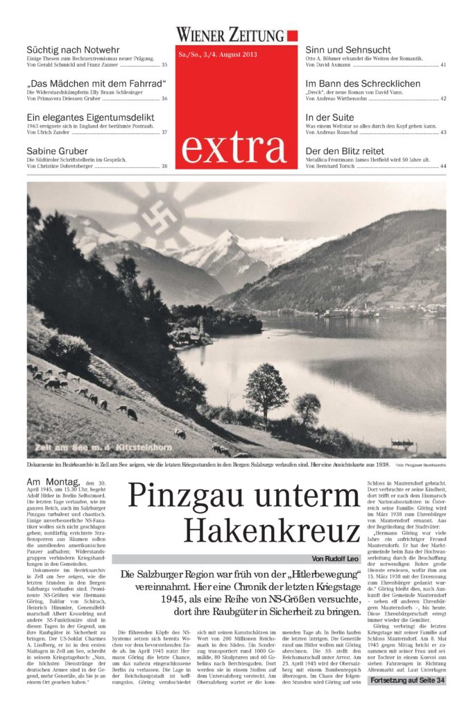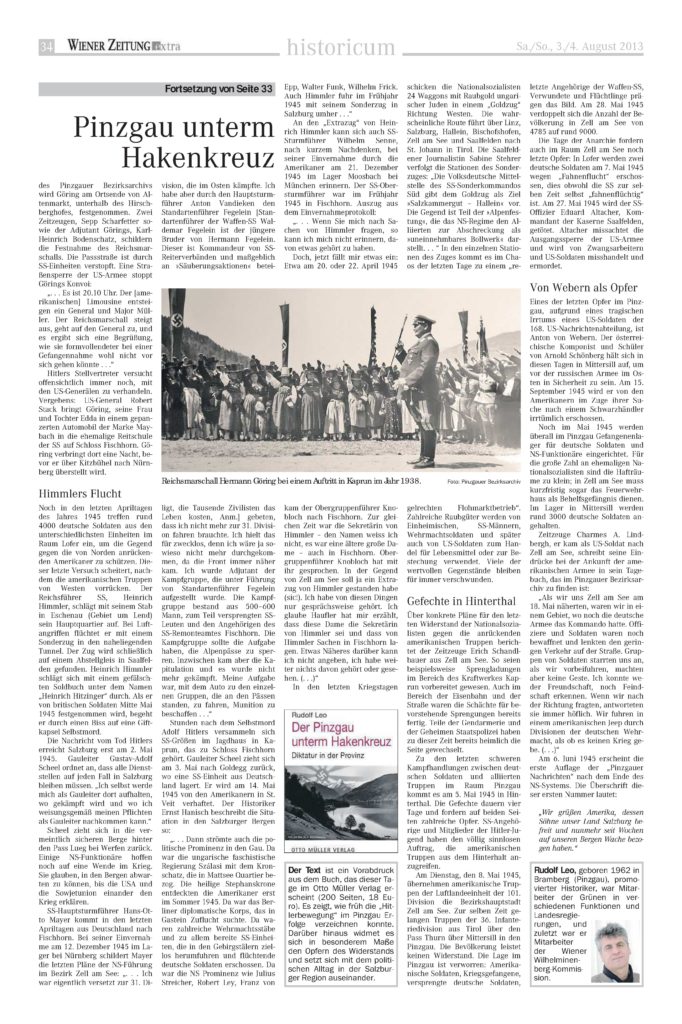 Wiener Zeitung 03.08.2013 17. April 2019 Aus Von rudileo Bericht über das Buch „Pinzgau unterm Hakenkreuz“